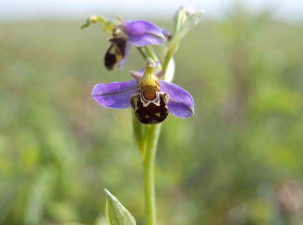 L'Ophrys apifera est pollinisée par des abeilles solitaires (dont plusieurs espèces d'eucère) mais pas par les abeilles sociales (comme l'abeille domestique). La plante attire l'insecte en produisant une odeur qui imite l'odeur de l'abeille femelle. De plus, le labelle se comporte comme un leurre que l'abeille mâle confond avec une femelle. Le transfert de pollen se produit pendant la pseudocopulation qui s'ensuit.Certains chrysomèles peuvent également se prendre au piège, des cas d'Exosoma lusitanicum en pseudocopulation avec celui-ci ont été rapportée.Si la fécondation croisée n'a pas eu lieu, l'Ophrys apifera a recours à l'autofécondation. On peut observer un basculement précoce des pollinies sur le stigmate. Cette particularité provoque des variations locales nombreuses dont on a parfois voulu faire des espèces nouvelles.